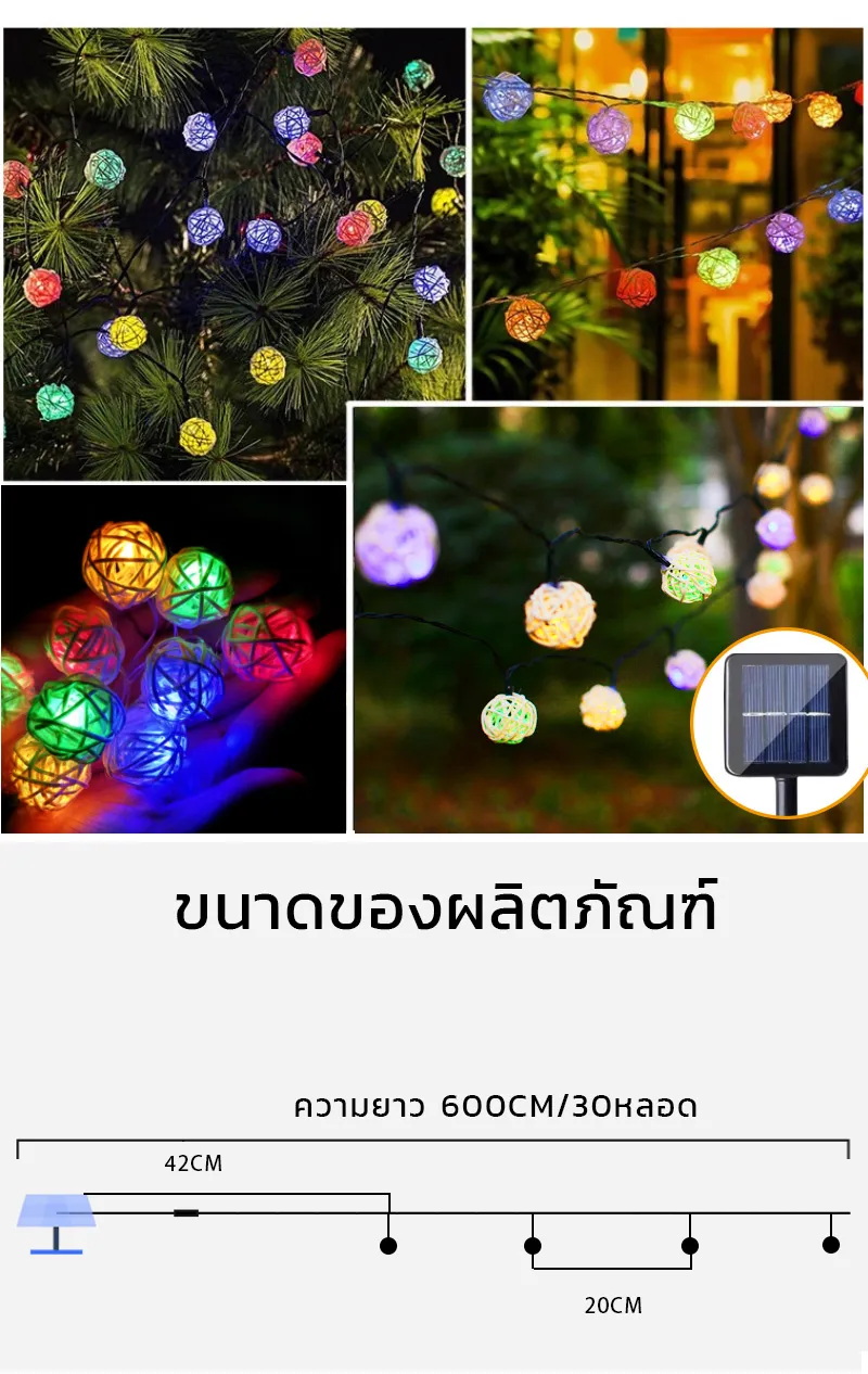 สินค้า: ไฟกระพริบโซล่าเซลล์ ทรงบอล รุ่น MD-SSL-6M-30B (แสง : หลากสี)