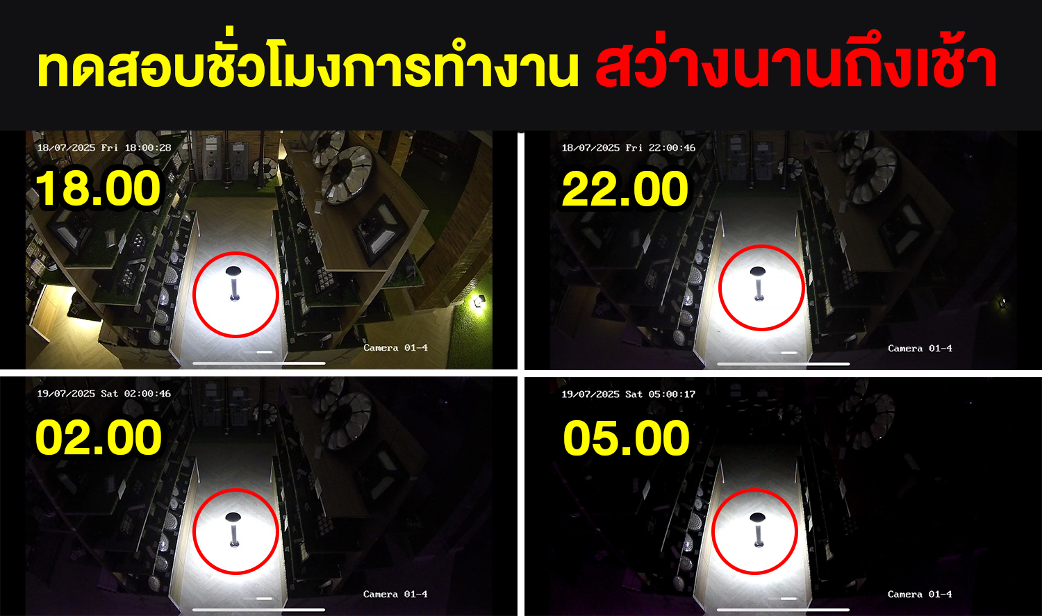 ออกแบบมาใช้งาน : ภายนอกโดยเฉพาะ ทนแดด ทนฝน ( อายุการใช้งานเเบตเตอรี่ 3-5 ปี )